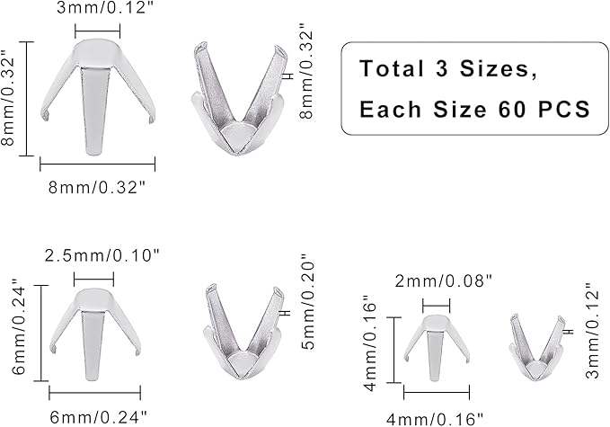 2-3mm claw buckles for leather/clothing/jewelry. Stainless steel.